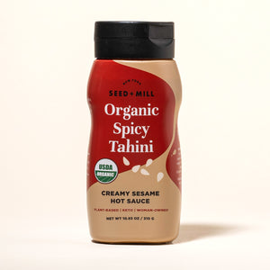 Like a shake of red pepper flakes or a few drops of hot sauce, a drizzle of our spicy tahini adds brightness and spice to your favorite dishes! We’ve taken the tahini you know and love and double milled it, rendering it extra silky smooth and drizzle-able, then added red hot chilis to give it a kick!