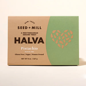 Enjoy both savory and sweet with our Sesame Sampler pack! This box includes two of our bestselling halva flavors (Pistachio and Sea Salt Dark Chocolate) beautifully packaged in an 8oz container, as well as a 16oz jar of our Organic Tahini.